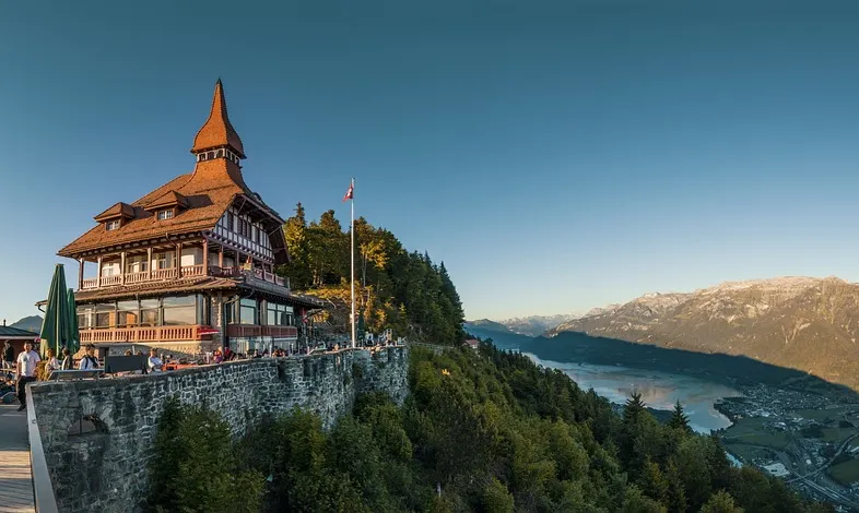 '인터라켄의 지붕(Top of Interlaken)’으로 불리는 하더 쿨름. 아이거와 묀히, 융프라우를 배경으로 두 호수 사이에 있는 인터라켄을 한눈에 담아 보세요!