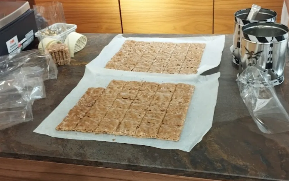 ‘레커(Lecker)’는 독일어로 ‘맛있다’라는 뜻이에요. 여기에서 ‘바즐러 레커를리’ 라는 이름이 유래되었죠! 바즐러 라커리는 반죽을 얇게 만들어 구워낸 뒤, 아직 식지 않은 반죽 위에 녹인 설탕을 부어 코팅시킨 다음 직사각형 모양으로 잘라내 만들어집니다.