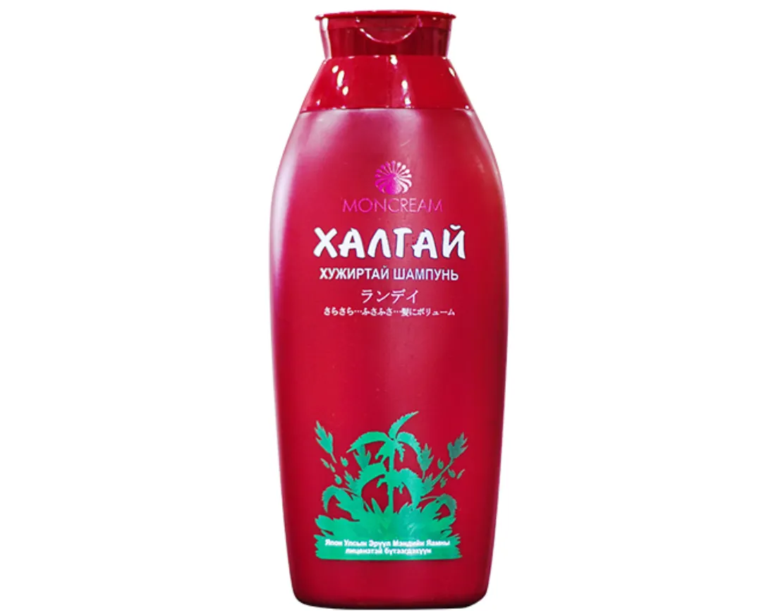 몽골 쐐기풀과의 한 종류인 약초 할가이에서 추출해서 만드는 샴푸에요. 몽골에서는 할가이를 종합비타민 식물이라고 부르며 피부, 머리카락, 손톱에 좋은 영향을 미치고 신진 대사를 정상화하는 데 도움이 된다고 알고 있어요. 쐐기풀은 얼굴 마스크, 크림, 샴푸 등 화장품 활성 성분으로 자주 사용되고 모발 구조에 긍정적인 영향을 미치기도 하며 저자극성 성분으로 탈모 증상 완화와 발모 촉진의 효과가 있죠.