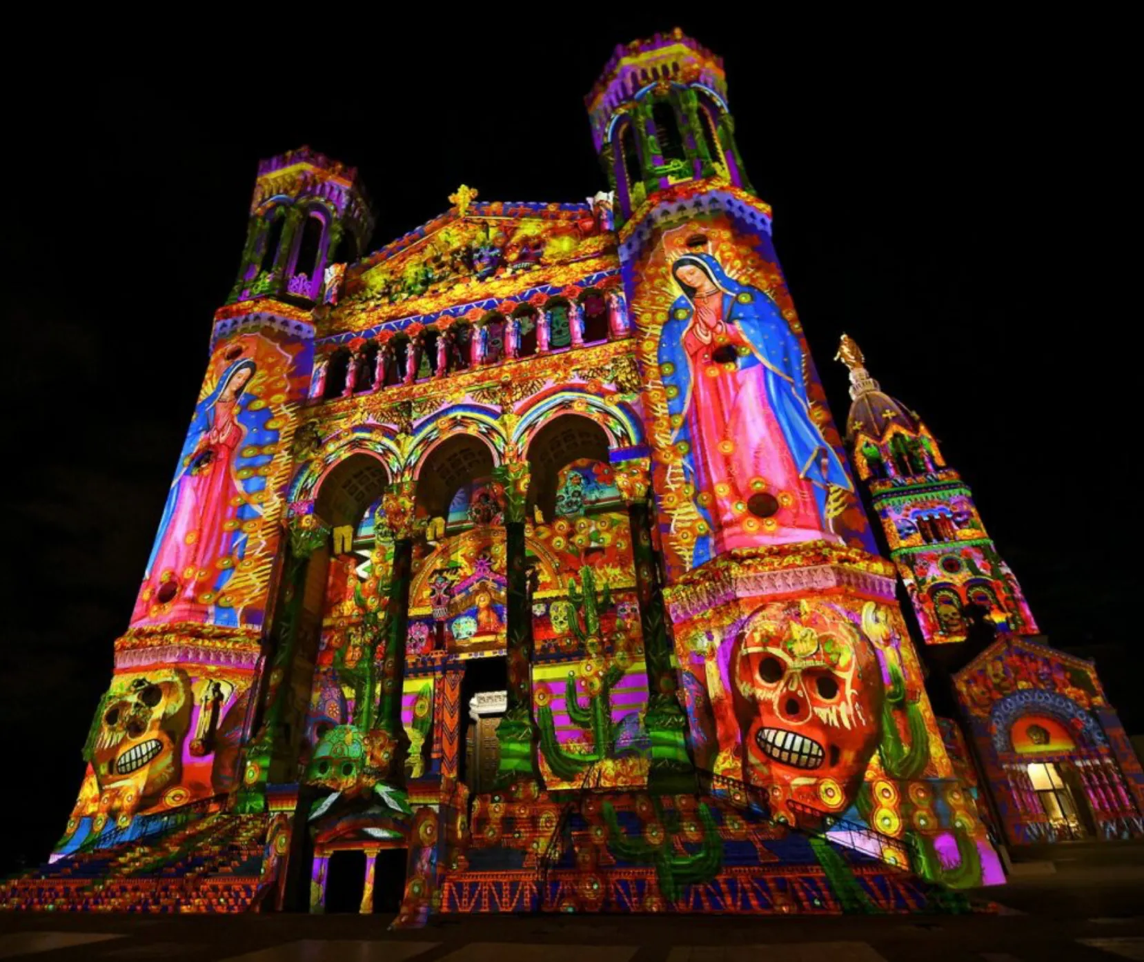 흑사병으로부터 리옹을 구한 성모 마리아에게 감사하는 의미로, 리옹에서 매년 겨울 12월 초 “빛의 축제(Fête des Lumières)”가 열립니다. 도시 곳곳에 촛불과 화려한 LED 장식을 켜고 하는 행사로 세계적으로 아주 유명한 축제인데요, 해가 진 후 푸르비에르 노트르담 대성당 외관에 LED 조명을 비추는 것이 이 축제의 하이라이트입니다. 빛의 축제 기간은 매년 달라지지만 보통 12월 8일(원죄 없는 잉태일인 12월 8일)을 포함하여 4일 간 진행됩니다.