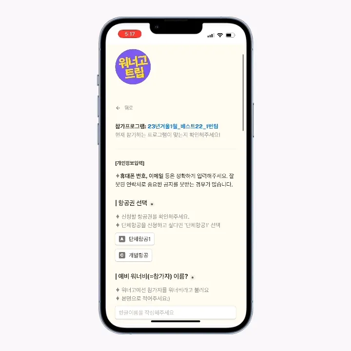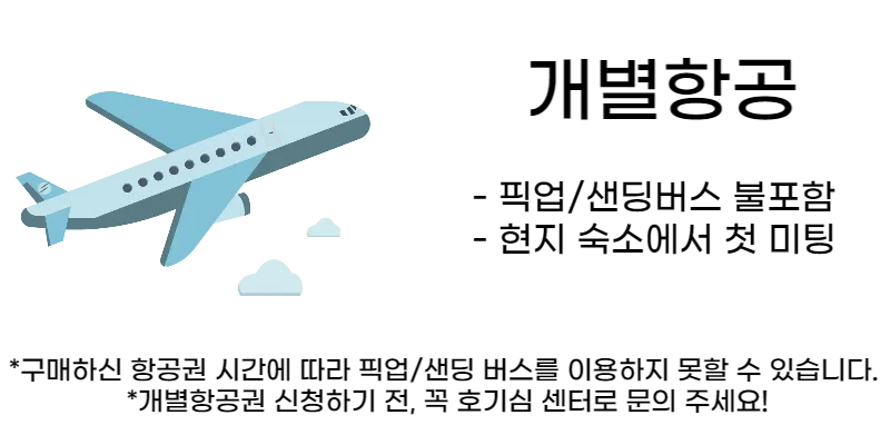 개별 항공을 원하시는 분들은 꼭 지원하기 전 미리 꼭! [워너고트립-호기심센터]로 연락주세요!