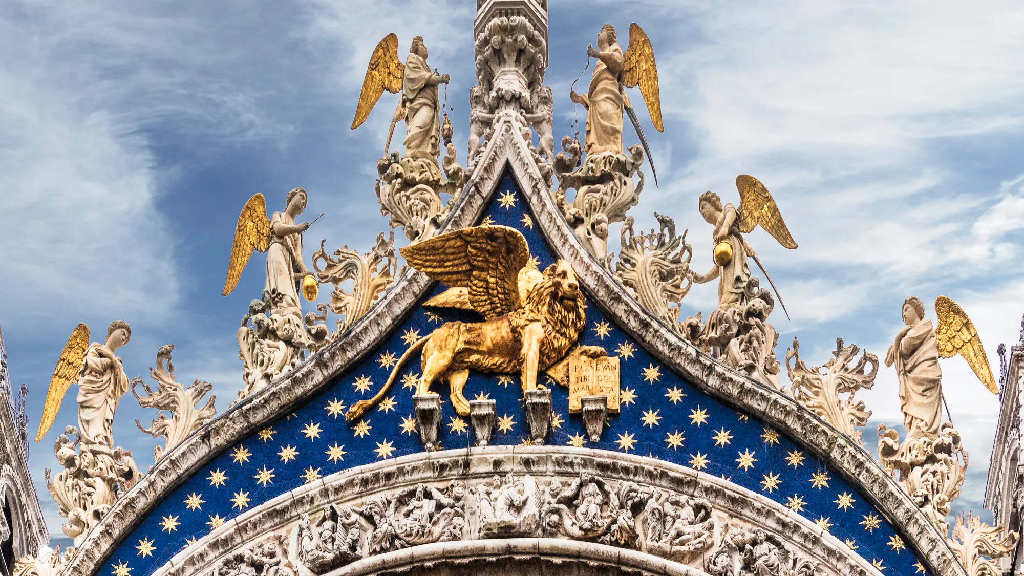 날개 달린 사자가 베니스를 대표하는 상징물이 된 근거는 성경에 있습니다. 기독교 초기 복음서 네 권의 저자와 성경에 나오는 네 가지 동물은 한 쌍을 이루고 있는데, 예수님의 제자 중 한 명인 마르코(영어로 Mark, 한국에서는 마가라고도 합니다)의 수호 신물이 바로 날개 달린 사자입니다. 기원 후 68년, 마르코는 이집트의 알렉산드리아에서 전도 활동을 하다가 순교했고, 수백 년이 지난 9세기경 베니스의 상인 두 명이 당시 무슬림의 지배하에 있던 알렉산드리아에서 마르코의 유골을 베니스로 훔쳐왔죠.