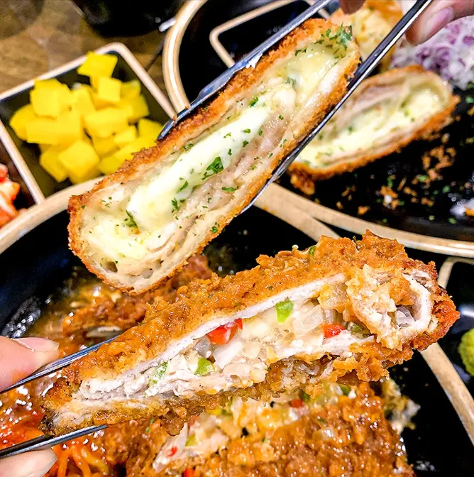 한국에서도 일식풍의 돈까스를 파는 가게에서는 '코돈부르'라는 명칭을 쓸 때가 있는데, 보통 코돈부르를 파는 가게의 치즈 돈까스는 코르동 블뢰처럼 치즈와 함께 채 썬 야채가 소량 들어가 있어요. 한국의 치즈 돈까스와 다른 점이죠!