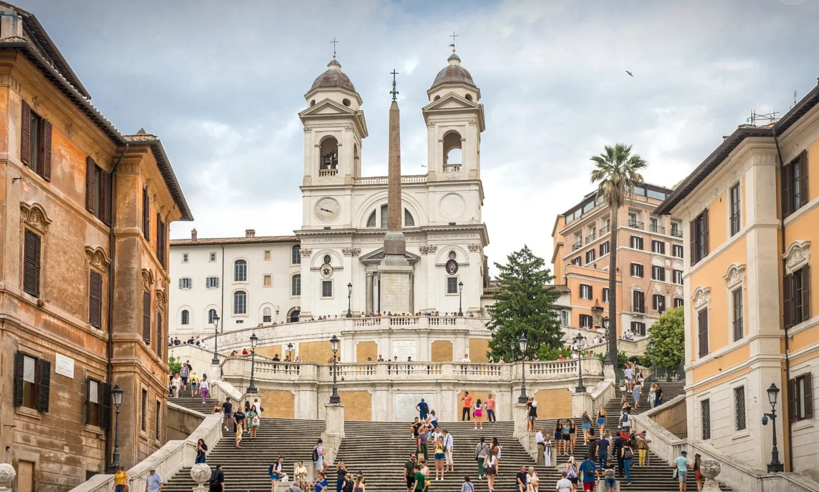 스페인 광장은 스페인 계단이 상징적인데요. 17세기에 스페인 대사관이 스페인 광장에 있었던 것에서 유래하여 이 계단에 '스페인 계단'이라는 이름이 붙여졌다고 해요. 시간이 지나 이곳은 만남의 장소가 되기도 하고, 영화 <로마의 휴일>에서 오드리 햅번이 아이스크림을 먹는 장면으로 유명세를 타기도 했어요.