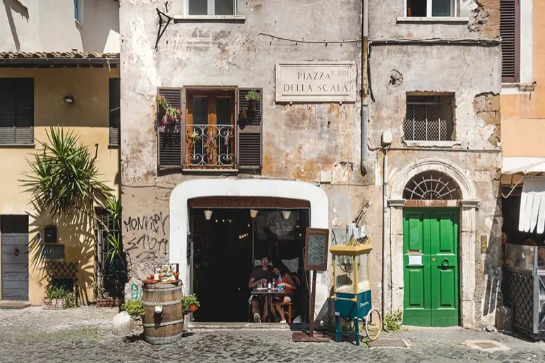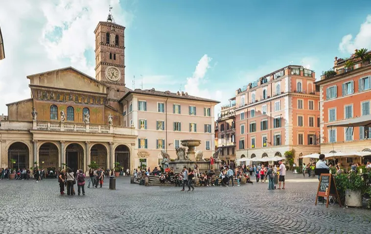 트라스테베레의 중심에 있는 산타 마리아 광장은 로마에서 가장 오래되고 아름다운 교회 중 하나가 있는 곳으로, 3세기에 지어진 성당과 12세기 종탑과 황금 파사드가 인상적이고 내부에는 반짝이는 12세기 모자이크가 있어요.