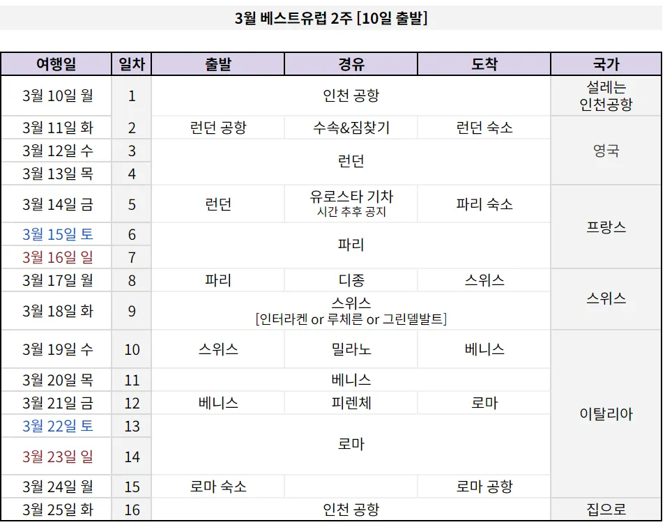 첫 유럽이라 핵심 서유럽은 모두 여행 하고 싶어요.