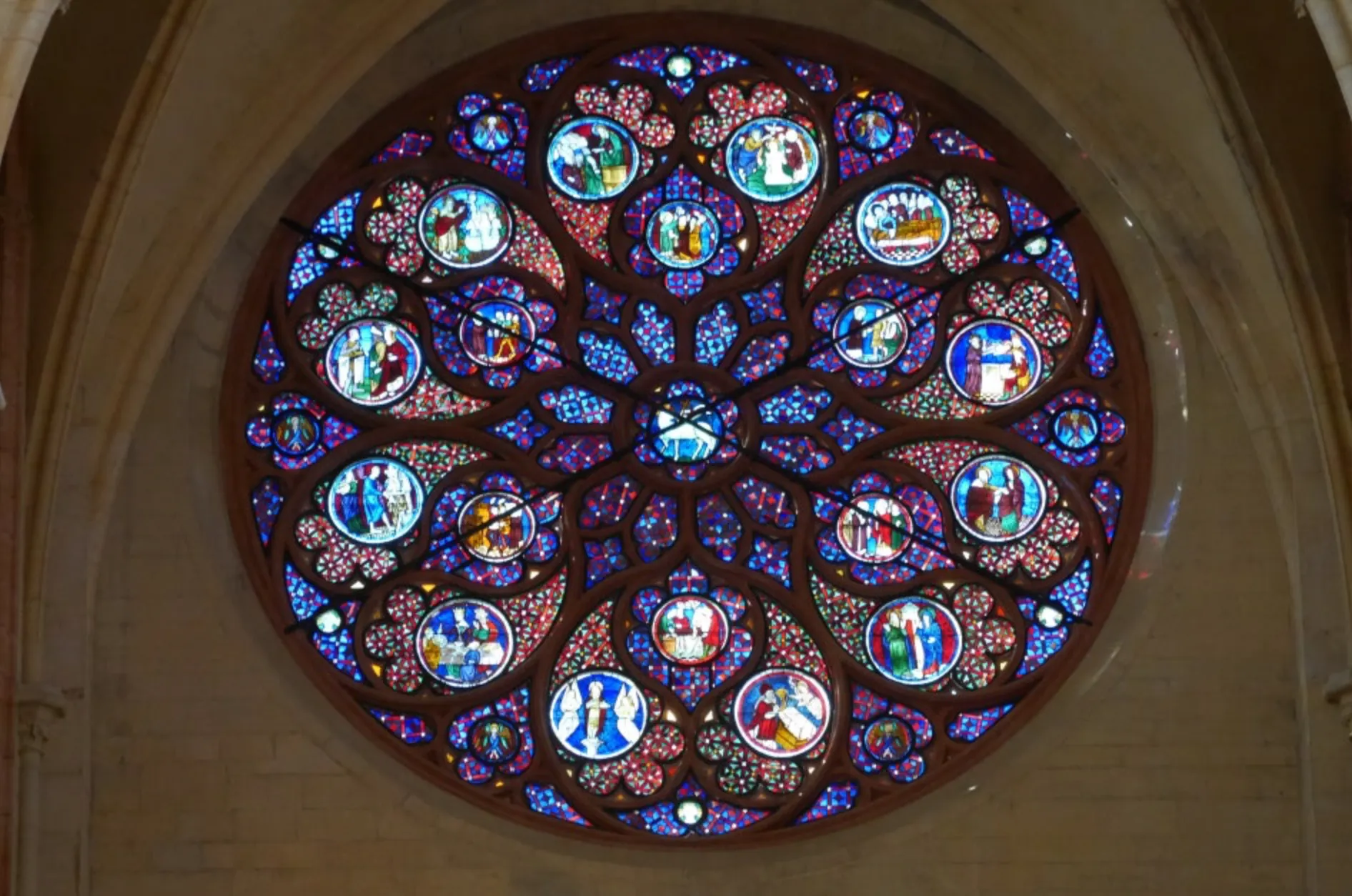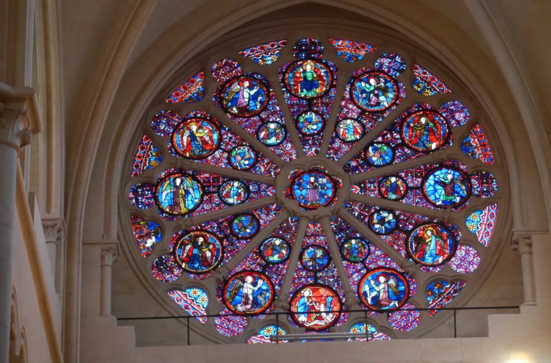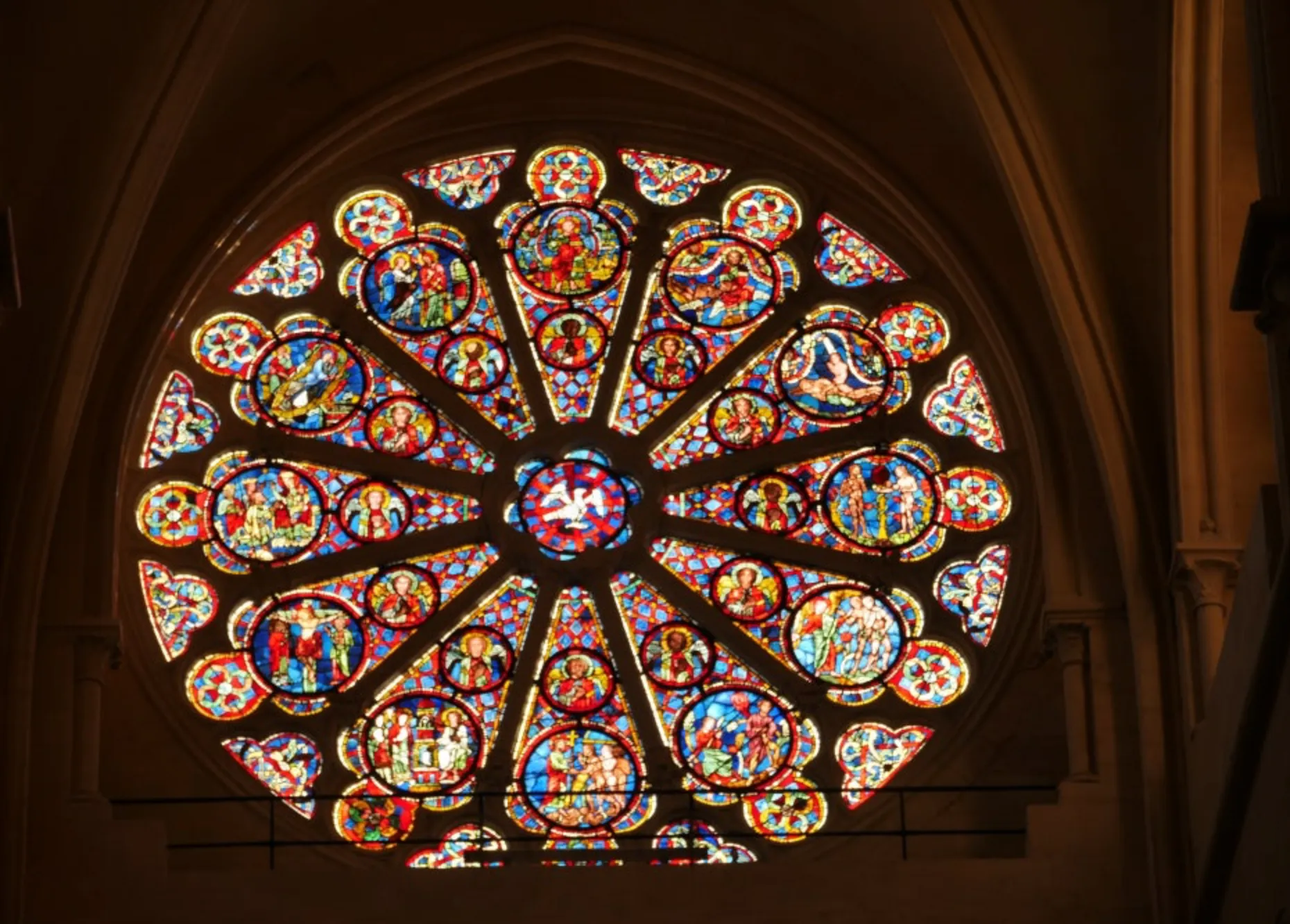 고딕 양식의 성당답게 성당 내부는 아름다운 스테인드글라스와 신비로운 빛으로 가득 차 있습니다. 제대 오른편에 있는 남쪽 장미창에는 아담과 이브의 이야기가 담겨져 있고, 천문시계 방향인 북쪽 장미창에는 천사들에 둘러싸인 예수의 모습이 담겨 있어요. 파사드 부분인 서쪽 장미창에는 유월절 어린양의 이야기, 세례자 요한과 성 스테파노의 인생을 차례로 묘사하고 있습니다.