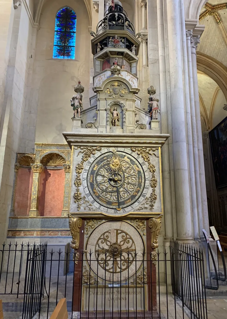성당 내부에는 프랑스에서 가장 오래된 천문 시계탑이 있습니다. 날짜와 시간은 물론 해와 달의 위치까지 알려주는 것으로 리옹 대성당의 하이라이트라고 할 수 있죠. 12시, 14시, 15시에는 가브리엘 대천사가 성모에게 예수의 탄생을 알리는 수태고지 장면을 볼 수 있습니다.