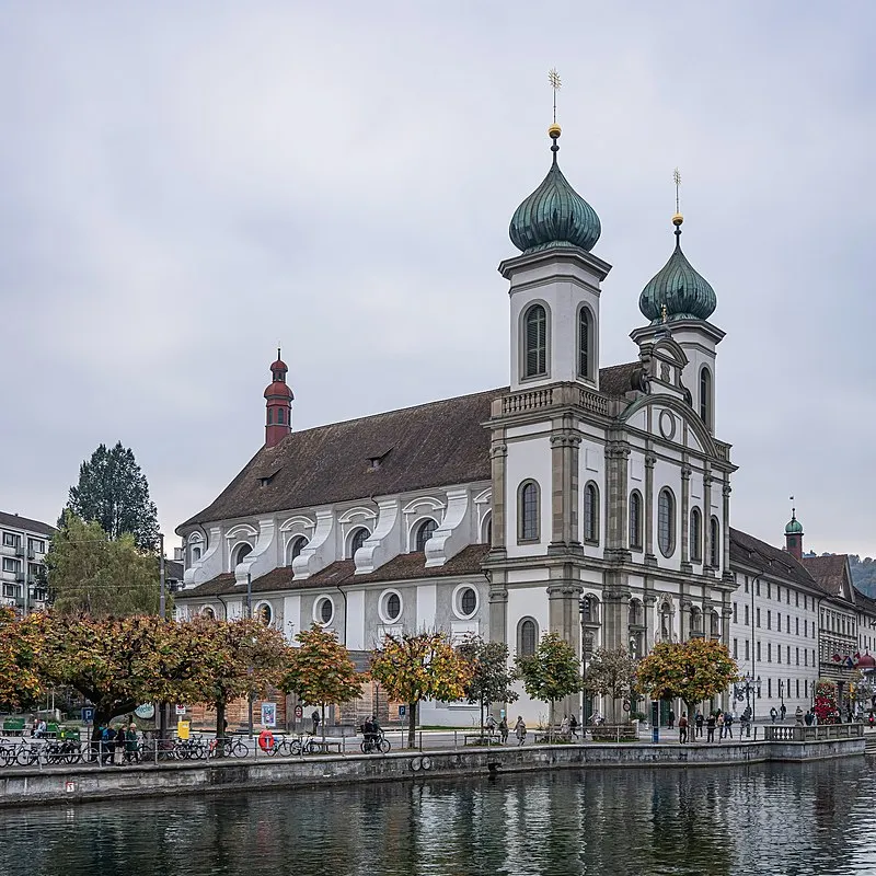 바로크 양식의 예수회 교회는 루체른에서 가장 오래된 교회 중 하나입니다. 스위스의 알프스 이북 지역에 지어진 최초의 바로크 양식의 교회로, 나란히 서있는 둥근 양파 모양의 첨탑 두 개가 인상적이에요. 내부는 흰색과 분홍색 대리석으로 꾸며져 있어 포근하고 소박한 미를 뽐내고 있어요. 현재는 성당의 역할뿐만 아니라 콘서트장과 오르간 연주자들의 교육장으로 쓰이기도 하며 루체른의 문화 형성에 크게 기여하고 있답니다.