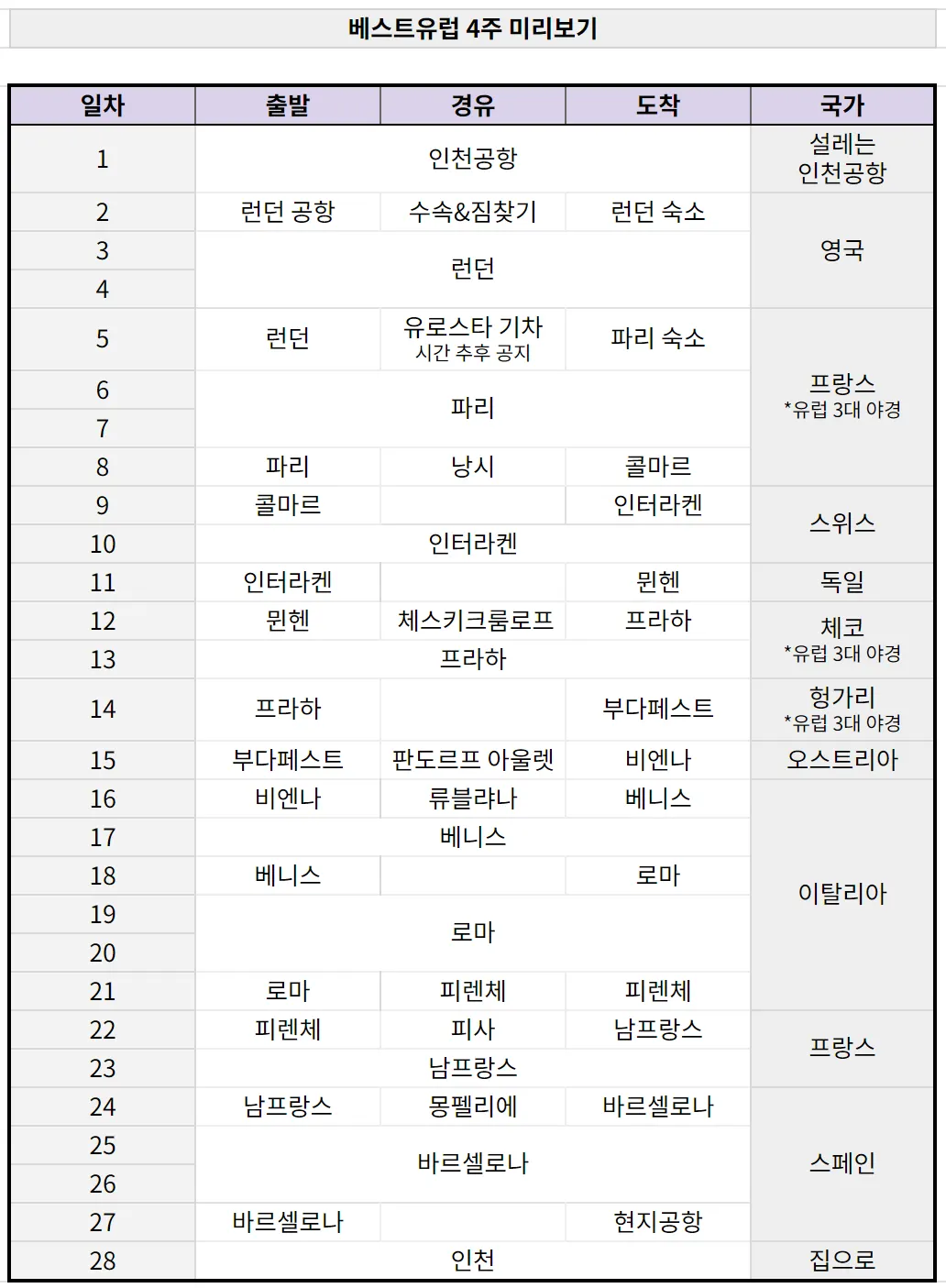 베스트유럽 4주, 어떤 점이 특별한가요?