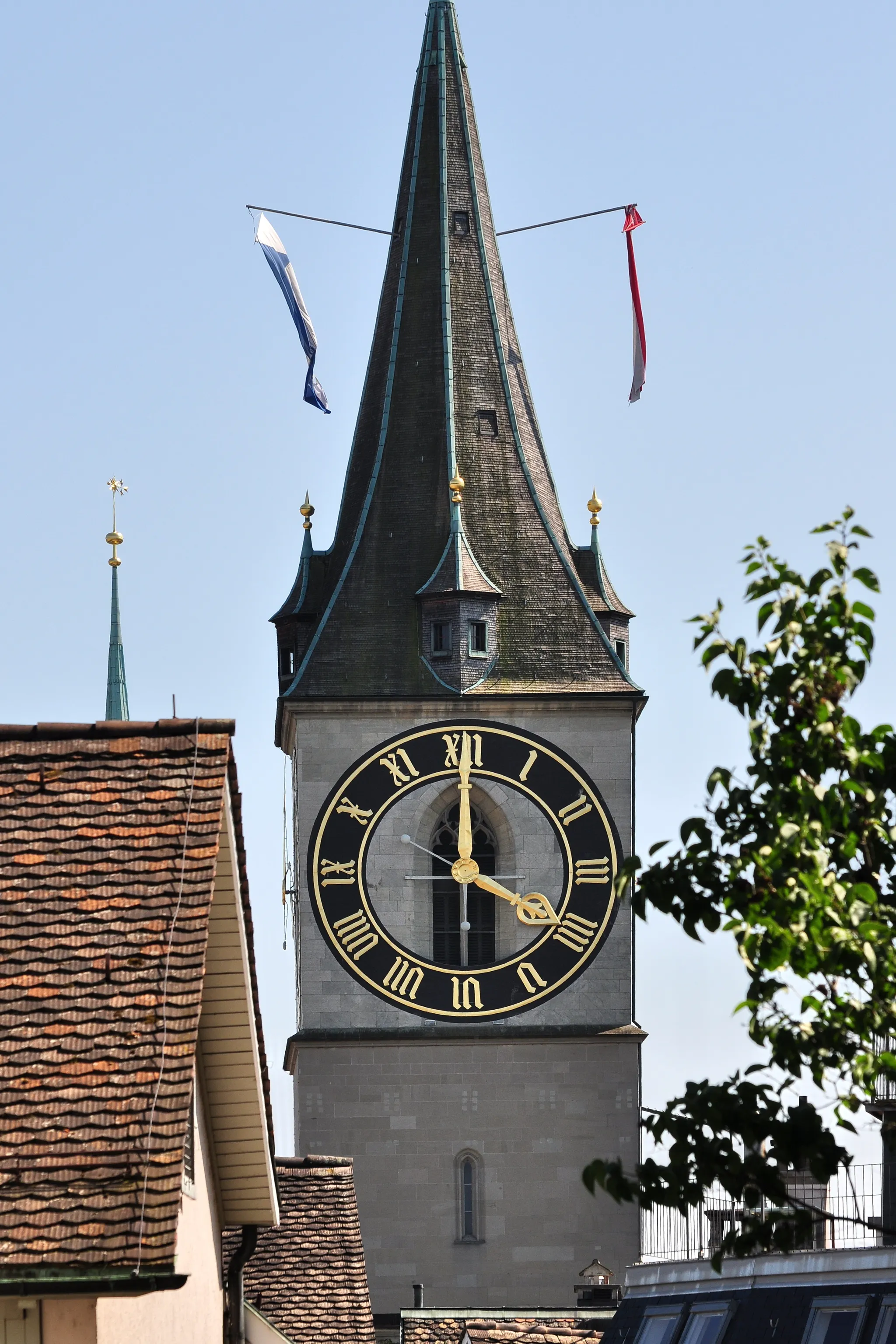 성 베드로 교회는 취리히에서 가장 오래된 교회로, 8~9세기에 세운 건물의 기단을 확인할 수 있습니다. 이후 여러 차례 재건과 증축이 이뤄졌는데, 초기 로마네스크(11세기), 로마네스크(13세기), 고딕(15세기) 양식의 건축이 더해져 지금의 모습을 갖추게 되었어요!