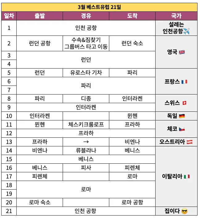 첫 유럽 여행! 2주는 너무 짧고 4주는 부담스러워..! 알차게 첫 유럽 여행 가볼 수 있는 프로그램!