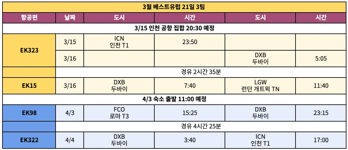 2) 공동구매 항공권 이용 워너비들과 함께 인천공항부터 이동합니다.