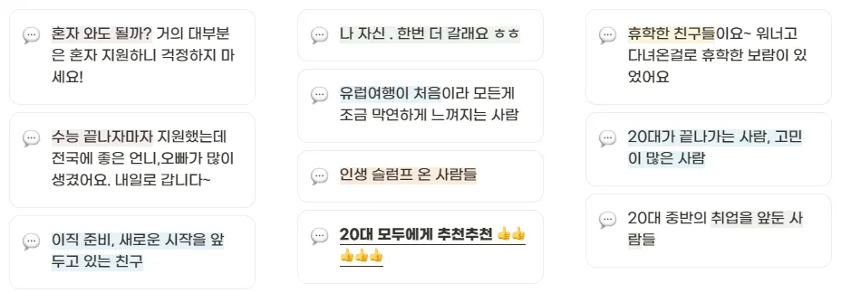 네 맞아요! 하지만 그만큼 진심인 사람들과 함께라면 더 좋은 여행을 할 수 있지 않을까요?